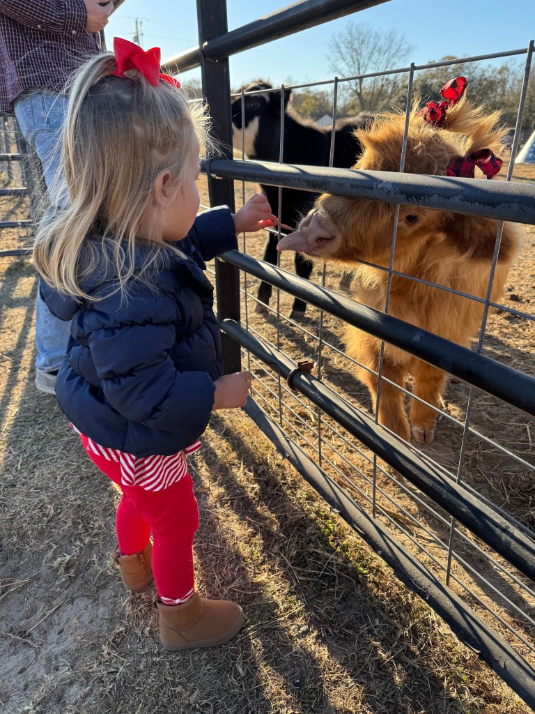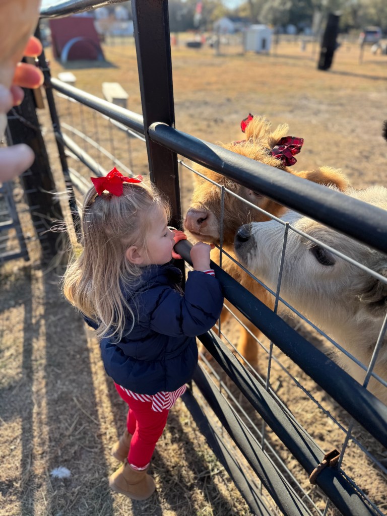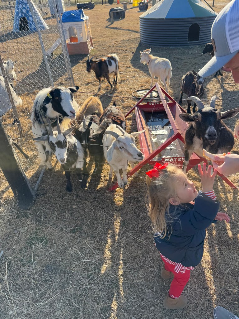 There’s nothing better than making memories with my girls, especially when those memories involve adorable animals, holiday magic, and small-town charm. Over the holidays, we took a short drive to Agape Farm of Watha, NC, for a festive day filled with farm fun, Santa visits, and sweet moments that we’ll cherish forever. It’s only about 30 minutes from where we live in Hampstead, but well worth it!