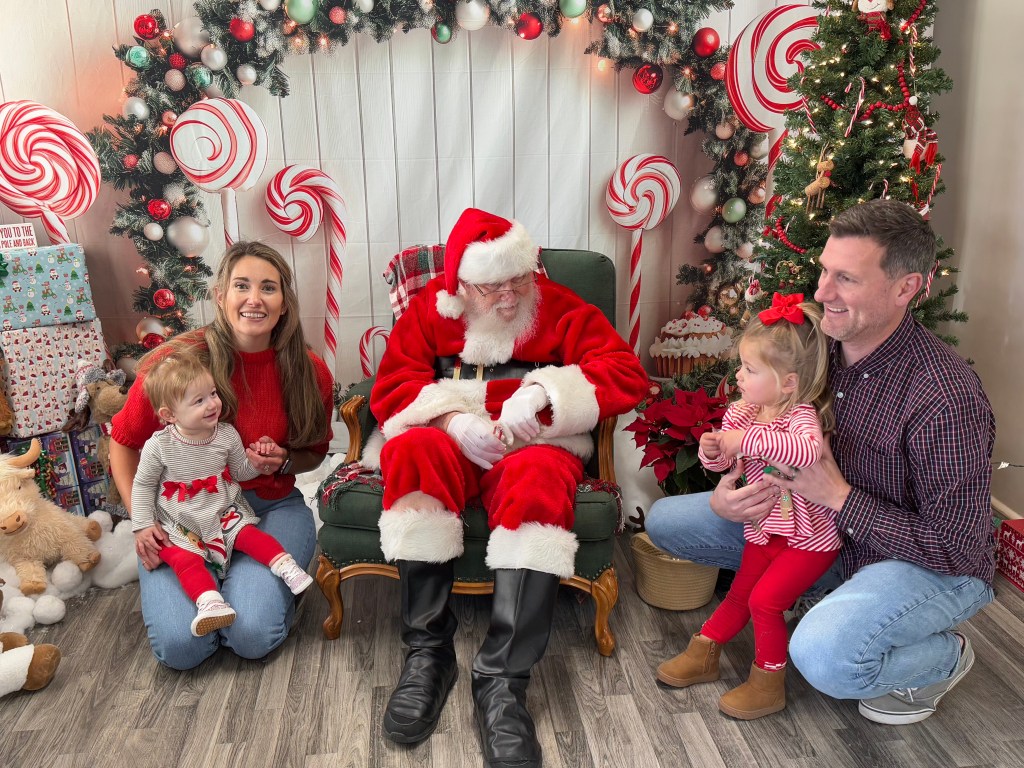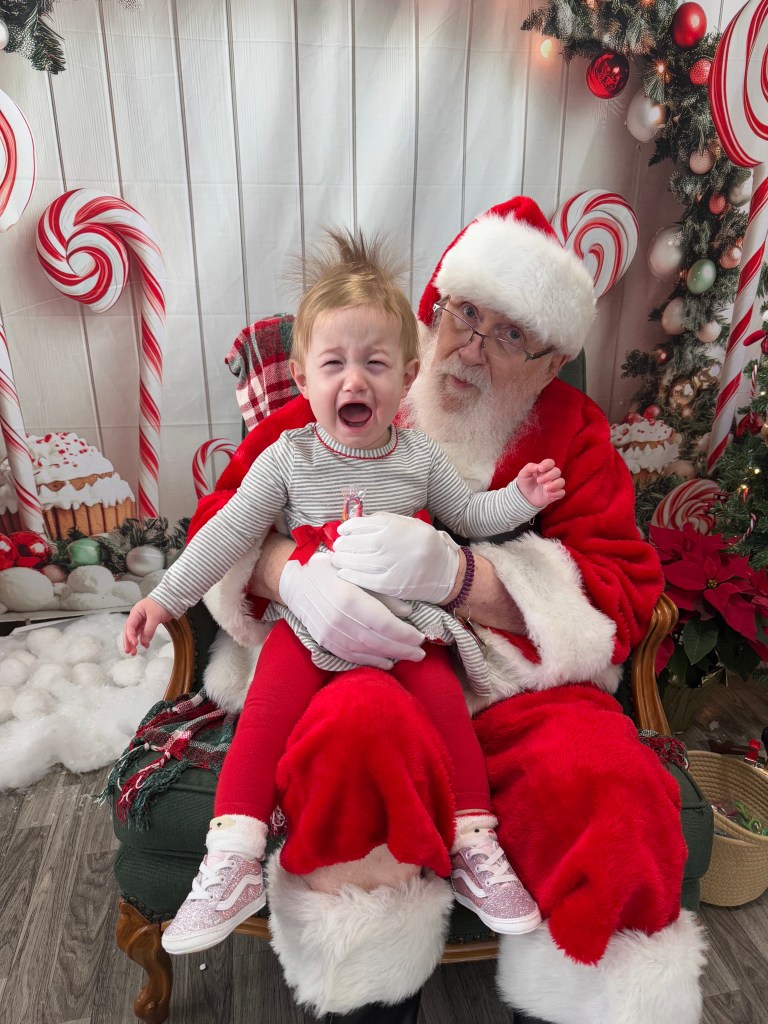 To make the day even more special, the girls got a magical visit with Santa! We were able to take a picture with the big guy himself (cue the mix of excitement, hesitation, then complete toddler terror). Not sure if Madeline will ever recover (see below), but Santa was a gem. They also have an adorable North Pole mailbox where kiddos can write letters to Santa (because we have some very important Christmas wishes!).